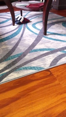 [This review was collected as part of a promotion.] This is such a cool rug and adds such a cool look to my home. The design and the darker colors I am here for. This didn't slide around as well which I find to be of good quality in a rug. So far any spills have wiped up no issues.