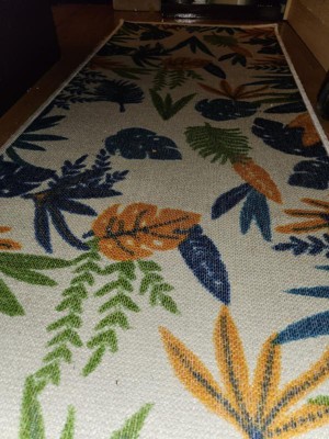 [This review was collected as part of a promotion.] I am in love. My kitchen is all blue, meaning the cabinets are all blue with the counters ceramic white and black splashes but this rug and its amazing colors gave the kitchen life. Its color combo of blue, green, orange really stepped up and brought light to the kitchen. It makes it fun to look at. I have used it for about a week now and it has had a bit of dirt but let me tell you, it was easy to clean. The rug was easy to open and put in place. Love it really.