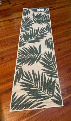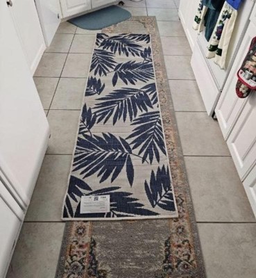 [This review was collected as part of a promotion.] I love this palm print runner for my house in Florida. It is perfect for the hallway leading to my tropical themed bathroom. Needed to put some anti slide grips on it as it sits on my hardwood floor and that hallway is a racing strip for my two cats. It has held up pretty well to them clawing it as well. Great color and print and seems to be very durable.