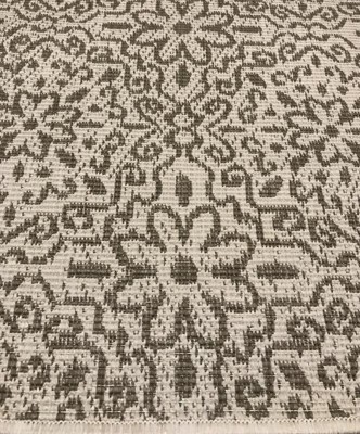[This review was collected as part of a promotion.] This rug is very attractive. I love the overall color and design, which would blend easily with a variety of styles and decor. It feels like it will be durable in an outdoor setting. The rug is actually about a foot longer than it appears in this photo (long rectangle, not a square), as I folded one side under to fit this space just to see how looked. The actual rug size is 5X7. Ultimately I plan to use it on an outdoor patio once the weather is warmer again, and I feel like it will work very well in that space. I would definitely recommend this carpet as a versatile option for tiled, wood, or concrete floors/surfaces, to add comfort underfoot in addition to an interesting design element. I would suggest using a tacking product or anti slip base, depending on the surface texture, to avoid sliding.