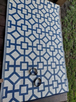 [This review was collected as part of a promotion.] Love the geometric look and the navy really pops I was able to redo my outdoor space with this rug as the main focal point and it looks great I love how easy it was to move around and find the best area for it the design and materials used really work well for me