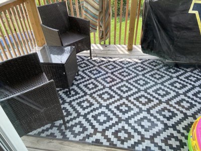 [This review was collected as part of a promotion.] This is a really nice indoor/outdoor rug, I use it on my porch under my son's water table so he doesn't slip and fall and it's perfect. It is a very nice pattern and matches my porch really nice and is a nice size. It seems high quality and dries nicely. I would definitely recommend it.