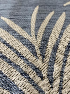 [This review was collected as part of a promotion.] This Contemporary Palm Leaves Rug is a great addition to my patio deck! It is a very comfortable woven texture and great for outdoors. The size is perfect! I also love the blue color of this rug that gives the perfect pop of color to my patio and plays well with my patio furniture.