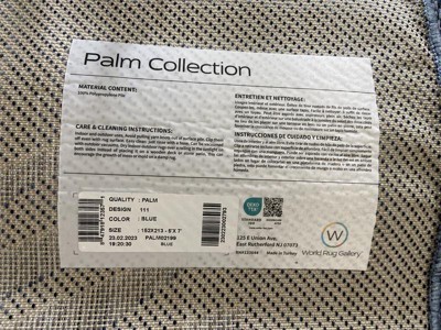 [This review was collected as part of a promotion.] This world gallery contemporary palm leaves rug is beautiful and well made. It can be indoor or outdoor and is super easy to get any dirt out of it.
