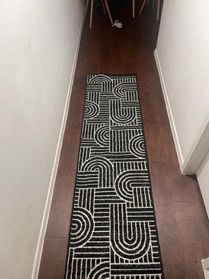 [This review was collected as part of a promotion.] I love the texture and the design of the rug. Because it came in rolled, you need to put something on it so it becomes flat. I’m in a dorm, so I have a two black chairs and this black and white rug goes perfectly, especially the size!