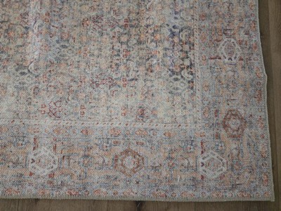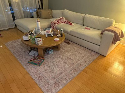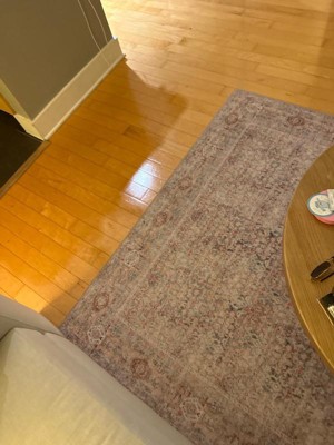 [This review was collected as part of a promotion.] I love the look of the rug!! It is so pretty and goes perfectly with my decor and living room. I wish it was a little bigger but still fits nicely. The material could be better quality, but it’s overall soft and easy to clean and vacuum. Very flat. I like that the edges don’t lift at all. My only negative is that the bottom black rubber of the rug sheds a lot especially during set up which requires a lot of cleaning.