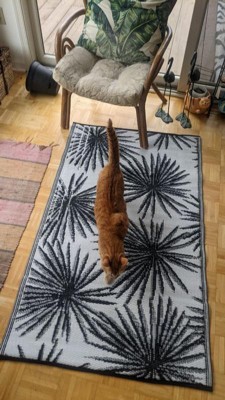 [This review was collected as part of a promotion.] I am pleased with this rug as it is lightweight and easy to clean. The floral pattern is offers vibrant tropical floral patterns that enhance the outdoor space. Made from weather-resistant polypropylene, it withstands sun, rain, and heavy foot traffic, remaining mold and mildew resistant. The rug is comfortable underfoot and easy to maintain with a simple hose down. Its versatility allows for both outdoor and indoor use, adding a touch of tropical charm wherever it's placed.