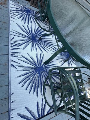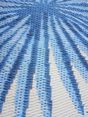 [This review was collected as part of a promotion.] I absolutely love this tropical plastic rug! Perfect size for an outdoor patio or rooftop. The design of the rug is very pretty and adds to a natural earthy look. Love the durability of the plastic rug easy to wipe and rolls up nicely. They even provide two bands to keep the rug rolled up which is pretty neat. Love this eco friendly product!