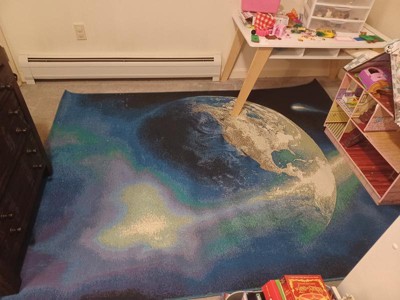 [This review was collected as part of a promotion.] My daughter, 9, absolutely loves this World Rug Galaxy. The 5 x 7 size is large which covers a nice section of her room for play which helps to keep a designates area for toys and also helps keep her carpet clean. The design is beautiful and the rug is very thick and durable. I expect this to last a long time. This is the perfect rug for any space admirer!