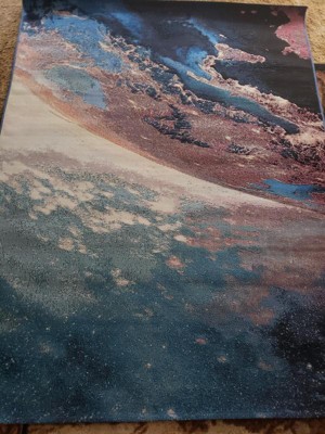 [This review was collected as part of a promotion.] This rug is so beautiful. My son loves it in his backyard patio area. He is into galaxy stuff,so I thought of him when I chose this rug. It's 5'3"×7' which is a great size for an area rug. Excellent quality and very durable. The colors are intense. Made from intricately high-grade polyester yarns for exceptional resilience and longevity. Indoor/Outdoor use. Weather and stain resistance.