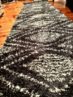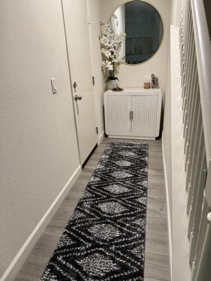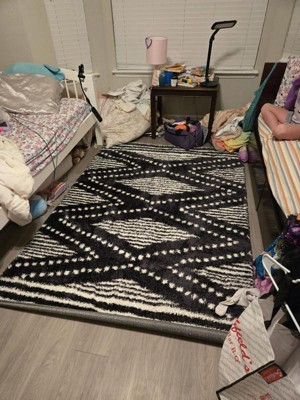 [This review was collected as part of a promotion.] I really like the geometric shag area rug because I feel like I’m walking on a cloud with how plush and soft it is. I find the geometric pattern modern and visually interesting, adding an elegant statement to my space. I appreciate that it has a non-slip backing — it stays firmly in place even on smooth floors. I also notice that the high pile creates a cozy, warm feel in my living room. I like how easy it is to clean by spot vacuuming, though I take care not to let crumbs get stuck deep in the fibers.
