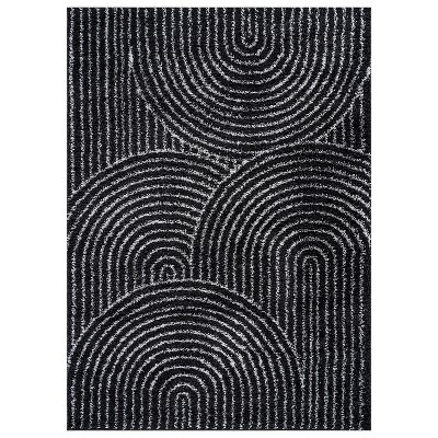 World Rug Gallery Geometric Shag Rug – Soft & Stylish – Anthracite Dark Gray – Medium Pile, Easy to Clean