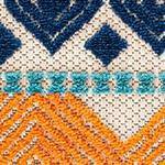 [This review was collected as part of a promotion.] I love this rug! It is an outdoor rug, but I am using it in my classroom so that I can easily clean it. The pattern is cool and I love the bright fabric. The fabric is slightly raised from the tan part of the rug. It is holding up well indoors.