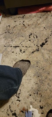 [This review was collected as part of a promotion.] This rug cleans easily and is very comfortable. The backing is nice as it keeps it in place on any type of floor. It has a good thickness and feels comfy in socks. It's a good color that keeps dirt and dog hair less visible until you vacuum it off.