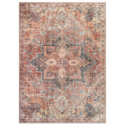 World Rug Gallery Marin Red Medallion Traditional Indoor Rug – Flatweave, Washable Surface with Non-Slip Backing