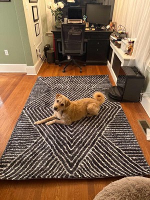 [This review was collected as part of a promotion.] This is a good middle of the road rug. It’s not exactly soft but it’s not uncomfortable either. Thr yarn just isn’t soft which is weird since it LOOKS soft. The size is accurate and the pattern is contemporary. My dog loves it but it will probably end up going into our guest room in the future.