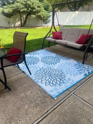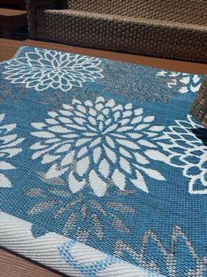 World Rug Gallery Modern Floral Aloha Reversible Recycled Plastic Outdoor Picnic Mat, Camping Rug, RV Rug - BLUE 3'3"x5': Stain & UV-Resistant, Flat