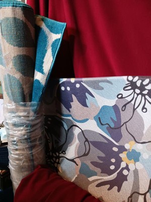 [This review was collected as part of a promotion.] I got this world gallery rug with blue floral circles for my computer room. It is very vibrant and very pretty. Sometimes rugs will be lumpy or fold, but this one DID NOT DO THAT! It lays flat and looks great. It feels nice and soft on your feet too. I love it!