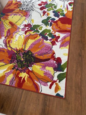 [This review was collected as part of a promotion.] Everything about this rug is amazing. I love the flowers, the brightness, how it brings life into my room.. I love how it is non-slip, which is very important with my kids constantly running around! It is an incredible piece to add to my den!