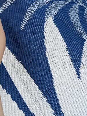 [This review was collected as part of a promotion.] The World Rug Gallery Modern Floral Reversible Plastic Outdoor Rugs - NAVY 3'x5' is a nice addition to my patio. Stylish and easy to care for. Wish it was a little heavier though as a slight breeze blows it.