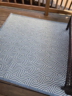 [This review was collected as part of a promotion.] We got this rug to go under our deck furniture and we love it. It is very good quality and easy to maintain. So far we've had a couple pretty bad storms and it has help up perfectly. I love the modern geometric design as well - I feel like it goes well with a ton of different styles.