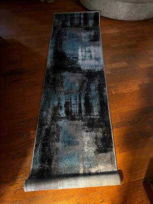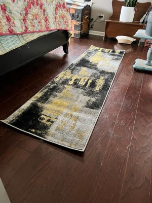 [This review was collected as part of a promotion.] This fun abstract rug is perfect for my bedside! The design is fun and the colors are easy to match with many decors. It is well made and is a little thicker and heavier than the runners you find in most box stores. It is spot cleaning only, which is fine because I don’t generally machine wash runners. The cats and dogs like it, they have been laying on it. The only thing I don’t like is how easy it moves out of place. With just a little more weight to it, it wouldn’t do that.