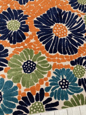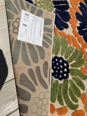 [This review was collected as part of a promotion.] I got this area rug to add some color and life to my newly remodeled back porch area and it has done the trick. The color and the flowers are so vibrant and it makes me every time I look at it. Love it!
