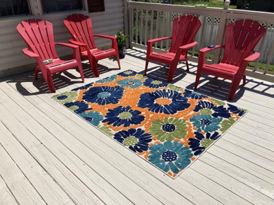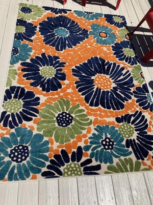 [This review was collected as part of a promotion.] I got this area rug to add some color and life to my newly remodeled back porch area and it has done the trick. The color and the flowers are so vibrant and it makes me every time I look at it. Love it!
