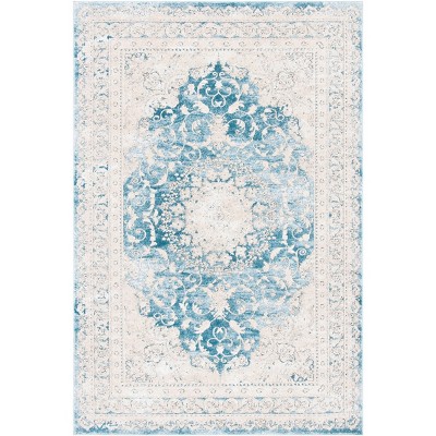 [This review was collected as part of a promotion.] This is a beautiful rug. I originally got it for my porch but it is more of an inside rug or a rug for a sunroom. The white gets dirty way too fast but it cleans up pretty easily. Its hues of blue added a nice touch.