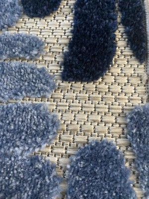 [This review was collected as part of a promotion.] This rug has a lot of texture. It is an indoor outdoor rug. I would only use it outdoor if it was on a covered screened in patio. I think it would get dirty pretty quickly. It has a raised more carpet like sections (the flowers) and a more woven recessed sections (in between the flowers). It is very vibrant and I love the blue and cream colors. I did have to unroll it and leave it upside down for a couple days so the ends would lie flat. Great rug! Can’t wait to decorate the rest of my room around this rug!!!