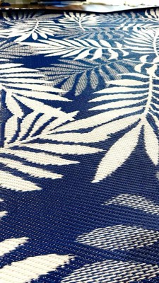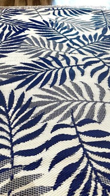[This review was collected as part of a promotion.] This rug is so stylish! It is perfect for patio, deck, or any outdoor setting. I love it so much! It is easy to clean and maintain! It is made from recycled plastic and it is both durable and environmentally conscious. I like that it is reversible with two distinct looks with the palm leaf pattern adding a tropical flair. The navy color is vibrant yet versatile, complementing various outdoor decors. Really well made and high quality.