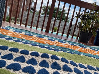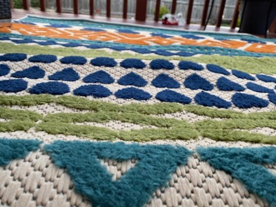 [This review was collected as part of a promotion.] The Ronda Contemporary indoor outdoor carpet is far nicer than I expected. I wanted something small to place in front of my outdoor sofa. I included in the pics how soft and luxurious this carpet is, the shapes and pattern have a raised tufted texture which is very nice and it still dries well after a rain. Super nice.
