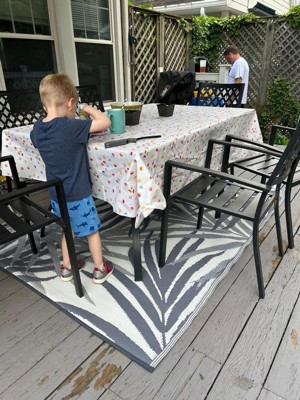 [This review was collected as part of a promotion.] This mat is great quality and perfect for putting under my table on my deck this summer. I love the design. It’s so pretty and summery. It will also help me from having food being thrown through the deck slats by my son. It is easy to clean and is a great value.