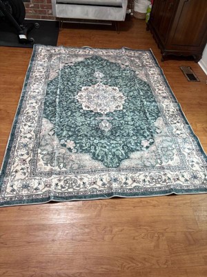 World Rug Gallery Traditional Oriental Medallion Washable Non Slip Area Rug - GREEN 2'x10': Low Pile, Stain & Fade Resistant, Pet Friendly