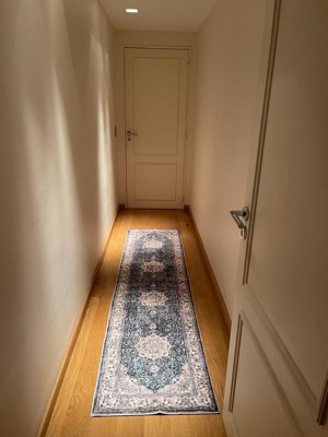 [This review was collected as part of a promotion.] I really like this rug! It’s very pretty and the colors are just like the picture. Of course, the design is printed (not woven), but for the price that is totally fine and it still looks very nice and elegant. Right now it’s not totally flat because it still has the shape from the package, but I think with time it will settle. Overall I’m very happy with the product , it gives a lovely touch to the space.