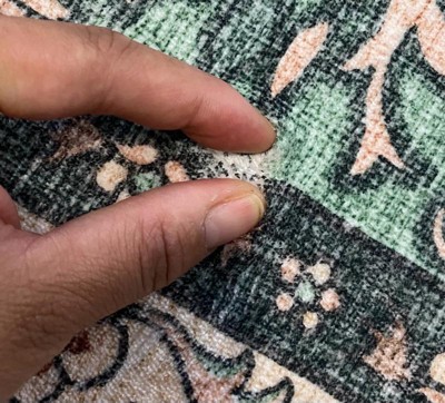[This review was collected as part of a promotion.] I really like this rug! It’s very pretty and the colors are just like the picture. Of course, the design is printed (not woven), but for the price that is totally fine and it still looks very nice and elegant. Right now it’s not totally flat because it still has the shape from the package, but I think with time it will settle. Overall I’m very happy with the product , it gives a lovely touch to the space.