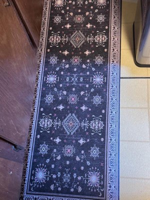 [This review was collected as part of a promotion.] I love the design on this it almost looks like a real rug! This thing is double thick and very sturdy. I’m dreading the dishes a little less at least. Seems like it would be very easy to wash.