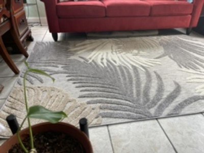 [This review was collected as part of a promotion.] I like this rug a lot. The tropical leaves pattern on this is perfect for my sunroom where I have indoor plants. It is a very soft rug with a nice texture to it. It is lightweight as well so it’s easy to move and remove if needed. The color will go with anything and it keeps my bright and cozy. I highly recommend this rug!