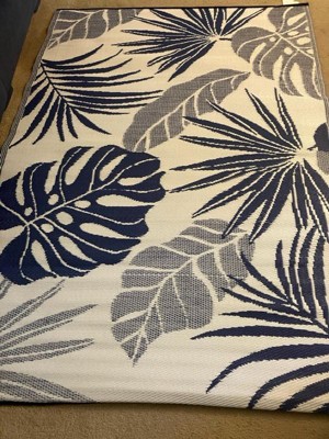 [This review was collected as part of a promotion.] The best outdoor rug! It’s been a fantastic addition to my outdoor space, bringing a vibrant tropical vibe with its sleek palm frond patterns and vivid navy color. The fact that it’s reversible gives me flexibility in changing up the look whenever I feel like it, which is a great feature. The rug’s durability is impressive; made from 100% polypropylene, it handles outdoor elements well and is easy to clean. This makes it perfect for my patio where it gets exposed to the sun and occasional rain. It hasn’t faded or shown any wear, which speaks to its quality and resilience. What I particularly like is its versatility. I use it not only on my patio but also indoors in my sunroom, and it complements both spaces beautifully. I highly recommended it!
