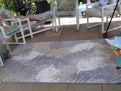 [This review was collected as part of a promotion.] I love this rug! Now we need new chairs and a table to complete our outdoor patio. Super soft yet durable feel to this rug. Plush and colorful. Love the big leaves.