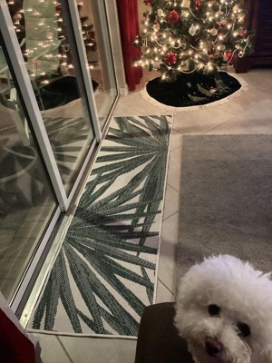 [This review was collected as part of a promotion.] Received the World Rug Gallery tropical leaves print 2ftx7ft rug a few weeks ago. It’s definitely more an outdoor rug tho it states indoor/outdoor. It is reversible. You’ll have to buy something to go under to make it not slip around (I use double sided rug tape).