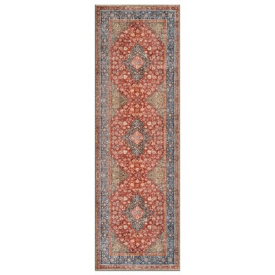 World Rug Gallery Valora Red Vintage Medallion Washable Low-Pile Indoor Area Rug with Non-Slip Backing