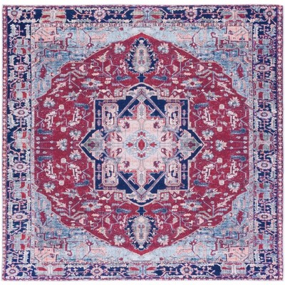 World Rug Gallery Vintage Inspired Machine Washable Non Slip Area Rug - RED - 6'6"x6'6": Flat Pile, Stain & Water Resistant
