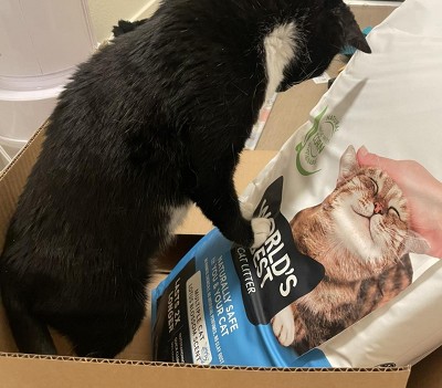 A: Our litter is made from natural ingredients, is digestible, and it contains no chemicals, clays, or perfumes. Although it is not unusual for pets to want to sample or taste the litter when it is first introduced, you will want to make sure your pet is using the product as it is intended for animal litter and not a dietary replacement as it will not meet your pet’s nutritional needs. For further assistance, feel free to contact our Pet Support team- custserv@worldsbestcatlitter.com or 1-877-367-9225