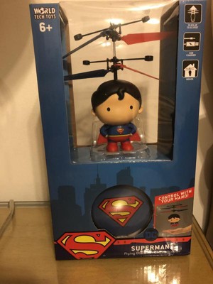 Introducing the DC Licensed Superman 3.5 Inch Flying Figure UFO Big Head Helicopter! Save the world with this Superman big head helicopter featuring a coaxial rotor system for precise movement and increased stability when hovering. The UFO Big Head Helicopters body is also constructed with a durable material making it strong yet lightweight so you don't have to worry about breaking anything when it lands a bit too rough. Using infrared motion sensitive technology, the UFO big head will detect nearby objects and is programmed to move away from them. Simply turn on and launch to get started, holding your hand underneath it will keep it hovering up in the air. When you're done flying you can try and grab it but you can also use the included remote control to shut down and recover safely, it's that easy! A must have for fans of helicopters, get the DC Licensed Superman 3.5 Inch Flying Figure UFO Big Head Helicopter today!
