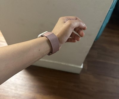 It does not go as small as other watch bands do (original Apple silicone band ) and is too big. The magnet is discoloring band the edges of the band are discoloring now too. Don’t waste your money. Watch falls off because it is too big and not secure.