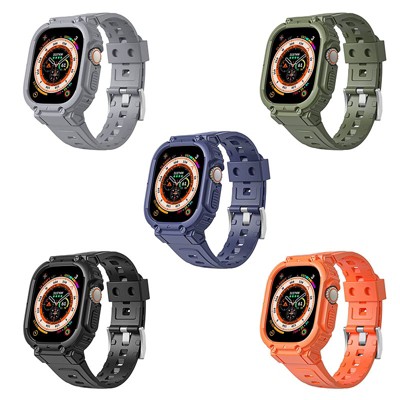 Worryfree Gadgets TPU Band with Protective Bumper Case for Apple Watch 40mm 41mm 44mm 45mm - 44mm/45mm - Black-Black