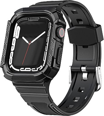 Worryfree Gadgets TPU Band with Protective Bumper Case for Apple Watch 40mm 41mm 44mm 45mm
