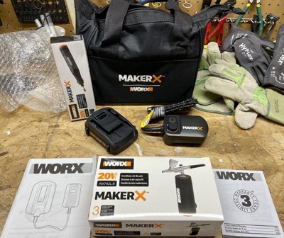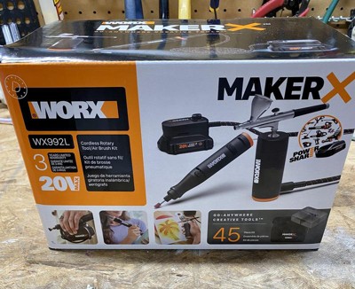 Worx MakerX WX992L 20V 2pc Crafting Tool Combo Kit - Rotary Tool + Air Brush