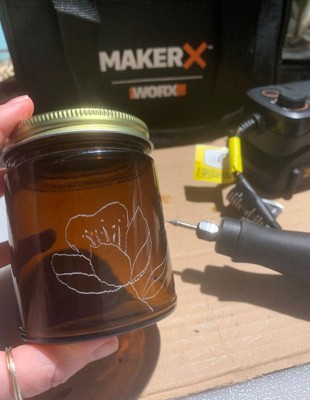 [This review was collected as part of a promotion.] Loving my new makerX tools! I don't have a ton of experience with 'power tools' and these are extremely user-friendly! I love how I can use the 20V battery with all of my MakerX tools (also purchased the heat gun for wood crafts and embossing). They are very easy to use on a table top without needing the battery plugged in, after it's charged! I have started using the rotary tool for embossing/etching projects, but with 45 accessories I am excited to use this for polishing, sanding, and so much more! My project seen above is a floral etching on a glass jar, I love how the handheld tool has a pencil like grip -- makes for an easy learning curve for artists!! Since tools and crafting supplies are hard to keep organized, I love that this came with a nice bag to store all the items in one spot. Also makes these easy to transport if you need them on site, etc! Highly recommend!
